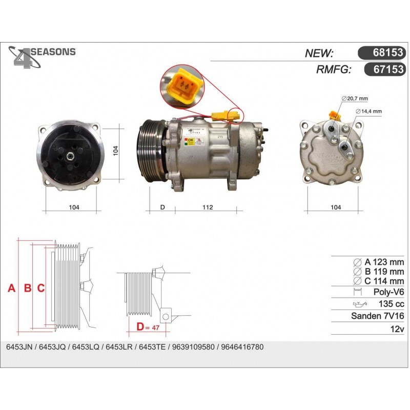 67153 COMPRESSOR RMFG PSA MOT 2.0 HDI 110 CV 67153 Quotation ›
