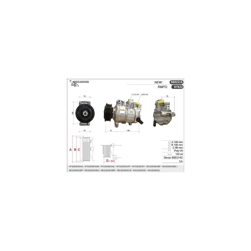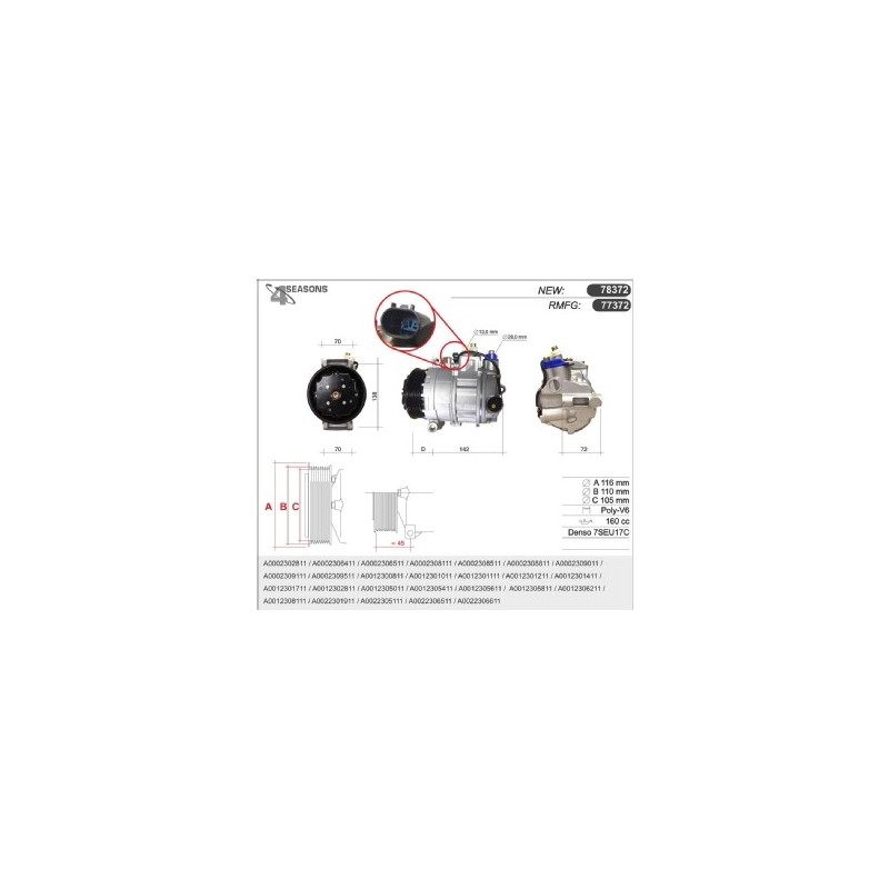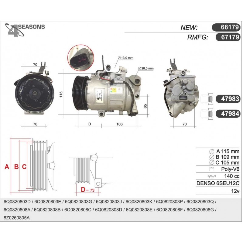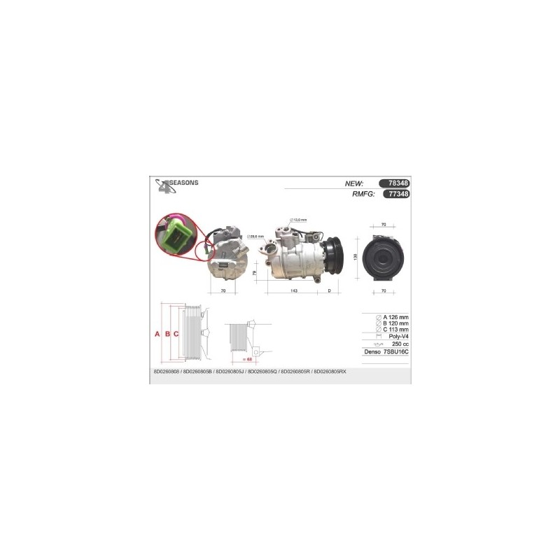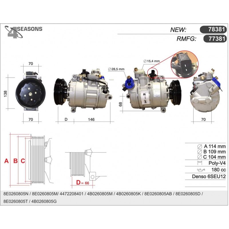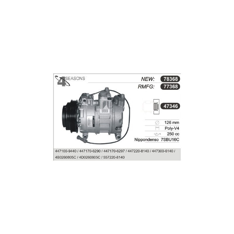 77381 COMPRESSOR RMFG DENSO 6SEU12 AUDIA4/6 77381 Quotation ›