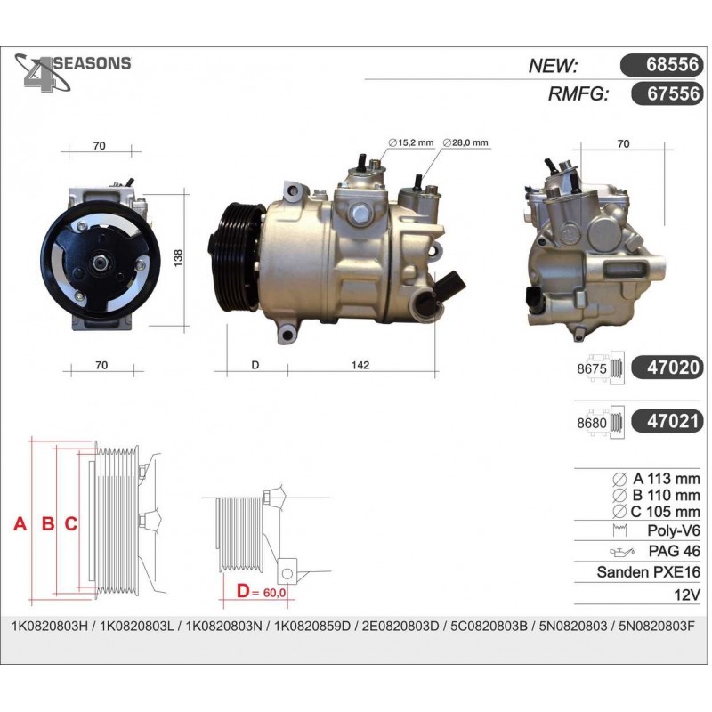 67530 COMPRESSOR RMFG VAG GOLF IV 67530 Quotation ›