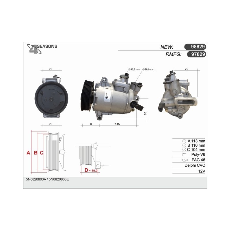 97829 COMPRESSOR RMFG VW GOLF 5/AUDI AE VERSION DELPHI 97829 Quotation ›