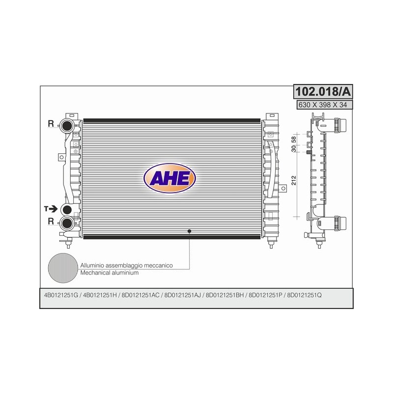 102.102/A RADIATOR AUDI A4 II 1.6-1.8-2.0-1.9 TDI 102.102/A Quotation ›