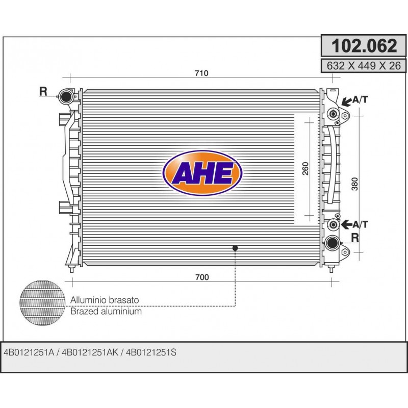 102.062 RADIATOR AUDI A6 II/III 2.5 Tdi AT+/-AC 102.062 Quotation ›