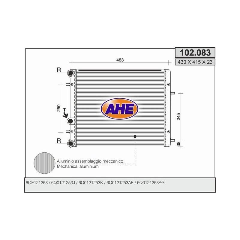 102.083 RADIATOR VOLKSWAGEN POLO VII1.2-1.4-1.9sd 102.083 Quotation ›