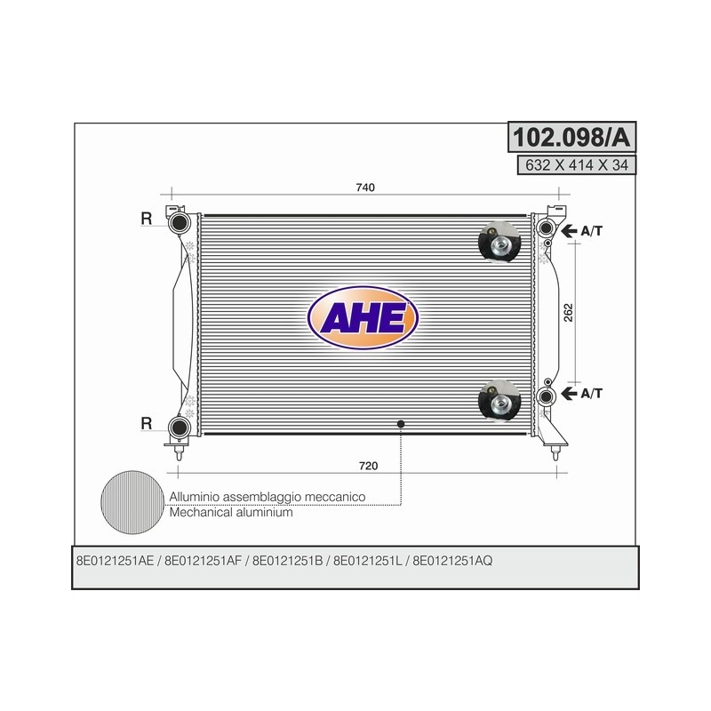 102.098/A RADIATOR AUDI A4 II 1.8-2.0-1.9TDI+-AC 102.098/A Quotation ›