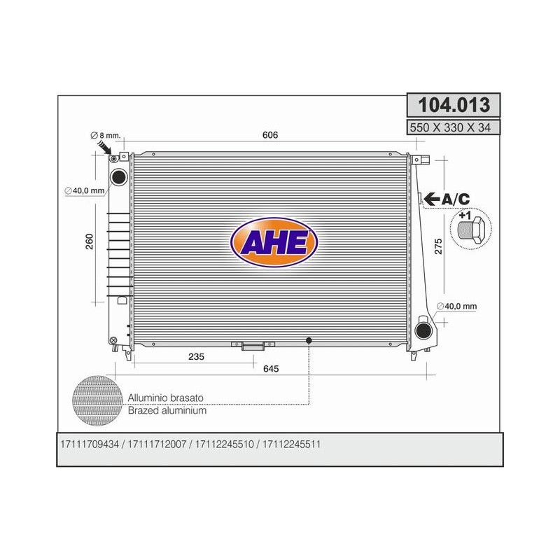 104.050/A RADIATOR BMW 525 TD/TDS (E39)M/AT +/-AC 104.050/A Quotation ›