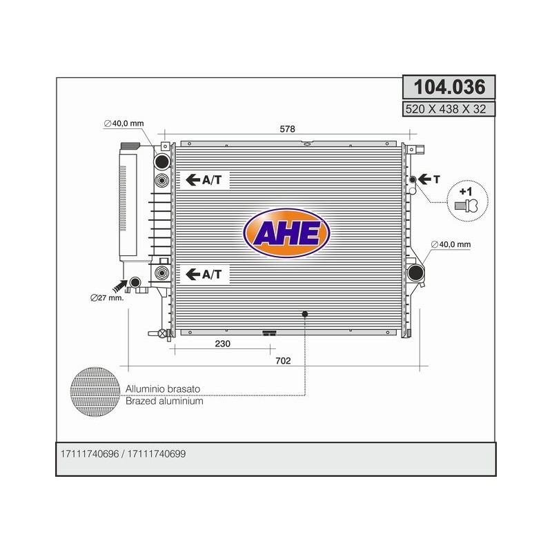 104.036 RADIATOR BMW (E39)520 M/AT AC 95 104.036 Quotation ›