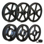 Adjustable pulleys are a particular family of V- belt pulleys. The adjustable width of the groove that fits the V – belt is the distinctive feature of this item. Material used is cast iron EN-GJL-250 UNI EN 1561.